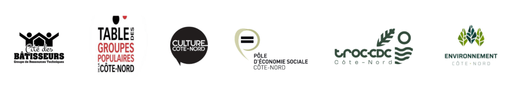 Cité des bâtisseurs, Culture Côte-Nord, Environnement Côte-Nord, le Pôle d’économie sociale de la Côte-Nord, la TROC Côte-Nord et la Table des groupes populaires de la Côte-Nord